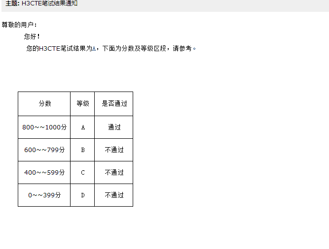 恭喜我中心学员-赵同学,经过为期一个月的刻苦学习和老师精心辅导下,终于迎来了好消息,顺利通过新版H3CTE笔试!特此报喜!